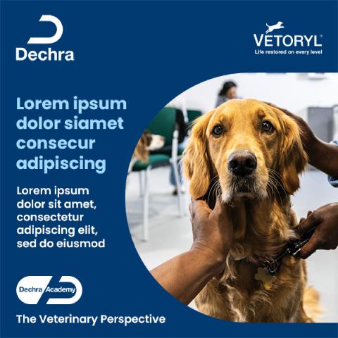 Tertiary: Academy brand (logo treated in white, academy brand imagery and elements incorporated to sit alongside Dechra corporate brand as intended.)