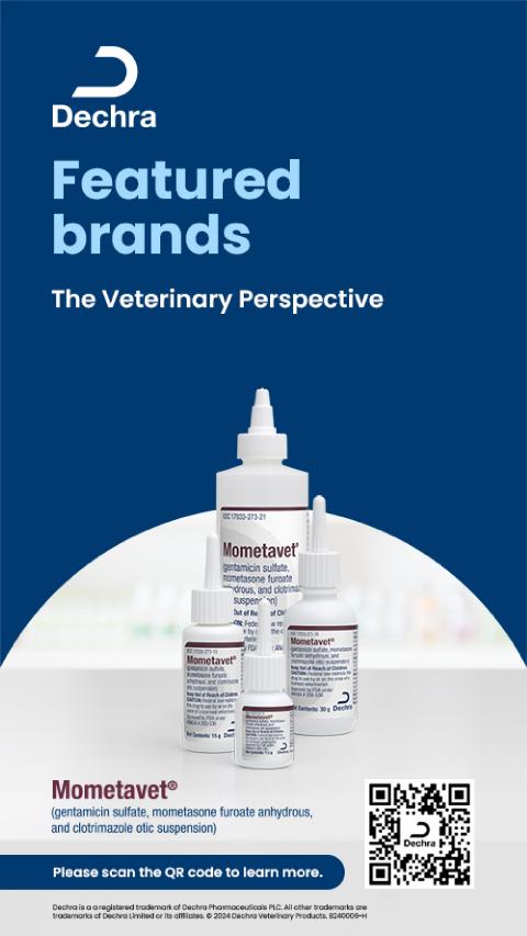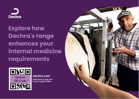 Secondary: Product brand (Product logos treated in white over Dechra brand colour.)