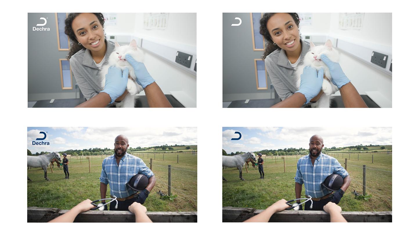 Throughout all video content, except at the very end when the logo takes centre-stage, the Dechra logo should be present in the top-left corner (never the bottom-left corner, as this could be obscured by captions).