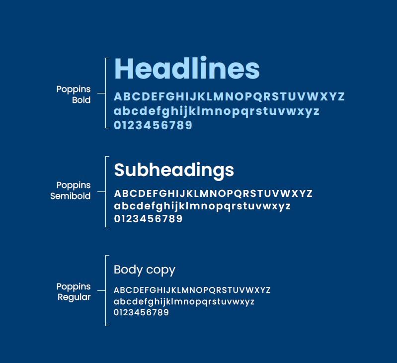 Our brand typeface is ‘Poppins’ which is available to download here.