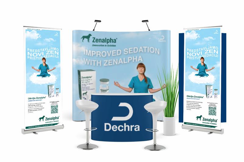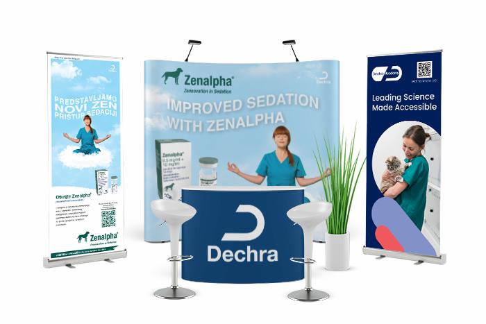 Secondary: Dechra brand (Logo included on central desk and separate sections of stand, including Dechra brand headline and ‘about us’ text.)